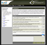 Why Governance Pro©?Now more than ever, governing boards face a daunting task. To succeed in their responsibility to the organization and its stakeholders the board must make a serious commitment to regularly evaluate their governance performance. The principle objective of evaluating Board/CEO performance is to acknowledge the good; identify areas where improvement is needed; and to engage everyone in building a sound organization through honest communication. Governance Pro© is quickly becoming the online board assessment solution of choice by organizations all over North America. Its comprehensive suite of twenty-one fully customizable performance evaluation templates, user-friendly navigation and intuitive web-based format makes it easy for your board to accurately evaluate the performance of the board, its board members, board committees, the CEO and senior executive team; as well as your organizations strategic plan. With Governance Pro©, you gain the necessary framework to take complete ownership of your governance process from start-to-finish so you can perform a more efficient, effective and thorough evaluation every time.